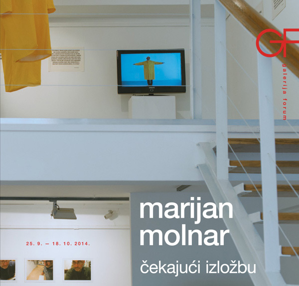 Čekajući izložbu naziv je novog postava Marijana Molnara u Galeriji Forum. Postavom umjetnik problematizira sam proces rada na pripremanju izložbe, ali i otvara šire pitanje značenja umjetnosti dovodeći u odnos najznačajnije umjetnike avangarde i domaće suvremene autore. Molnar je autor koji promišljeno i analitički pristupa djelu, razgrađujući ga i sklapajući tematske elemente u nove cjeline. U ovom slučaju razgrađuje i razrađuje proces pripreme izložbe, proces stvaranja u iščekivanju konačnog rezultata - izlaganja. Molnar postavlja pitanje i o samom značenju umjetnosti danas, uspostavljajući odnos između djelatnih domaćih autora i velikana avangarde koji su u nasljeđe ostavili vlastito promišljanje i djelo koje je u mnogočemu otvorilo nove prostore poimanja umjetnosti. Postav je podijeljen u dva dijela i time prati arhitekturu same galerije. U prizemnom dijelu postavljen je niz radova - glavnom kvadratnih formi na A4 papiru sa manjim varijacijama na temu. Na radovima su naznačeni datumi od dana kada je umjetnik saznao termin izložbe. Iznad radova postavljeni su selfie portreti nastali prilikom stvaranja radova. Tako umjetnik ritualno i kronološki bilježi ciklus pripremanja izložbe, prikazujući vizualni dnevnik nastanka radova. Repetitivnost procesa, insistiranje na svakodnevnom radu na istom motivu stvara ritam koji se odražava i u postavu. Činom ponavljanja ostvaruje se kontinuitet, uspostavlja se kod, no svaki novi rad donosi varijacije, razvoj i izmjenu motiva čime se otvara novo polje unutar iste domene. Različitost u ponavljanju označava onu vrstu vračanja istoga koje ipak nikada nije identično, koje uvijek donosi nove prizvuke, kontekst novog dana ili drugačijeg raspoloženja. Umjetnost kao "oblik ljudske djelatnosti", kako navodi Kata Mijatović u odgovoru na Molnarovo pitanje "Što je umjetnost?" odražava ovakve ritualizirajuće geste, geste kojima sile kaosa postaju forma. Pri tome se unutar ponavljanja istog nužno događaju pomaci. Unutar ritmiziranog ponavljanja istog motiva događa se prelazak, otvaranje novog polja aktivnosti. Uspostavlja se kod koji se istovremeno transformira sitnim varijacijama. Takav je postupak procesuralan i zahtijeva vrijeme. U tekstu predgovora umjetnik navodi kako mu je u radu "bilo bitno stanje čekanja i trošenja vremena, očekivanja onog predamnom sa svim što uz to stanje ide... ono sada i ono sutra, ono što dolazi iz budućnosti. Ovdje je vrijeme kao prikriveni sastojak naše egzistencije, smisao naših radnji na obzorju života". Stvaralački proces u ovom slučaju biva izložen pogledu posjetitelja, a kako navodi sam autor, on se sastoji od čekanja, iščekivanja, pa i trošenja vremena, budući da umjetnost zahtijeva određenu dozu ležernosti, polaganost koja je neprijatelj svrsishodnosti i neprestanom imperativu orijentiranosti na rezultat. Svojim kvadratima Molnar gotovo da bilježi protok vremena, odmatanje sutrašnjice u trenutku. Pri tome se selfie portreti doimaju kao dnevnički zapis ali i intruzija tehnološki induciranih trendova na sam umjetnički proces. Ritam izložaka postavljen u ravnini očiju djeluje poput lente vremena, označeni datumi, mini varijacije varijanta su dnevničkog bilježenja izraženog u vizualnoj formi.