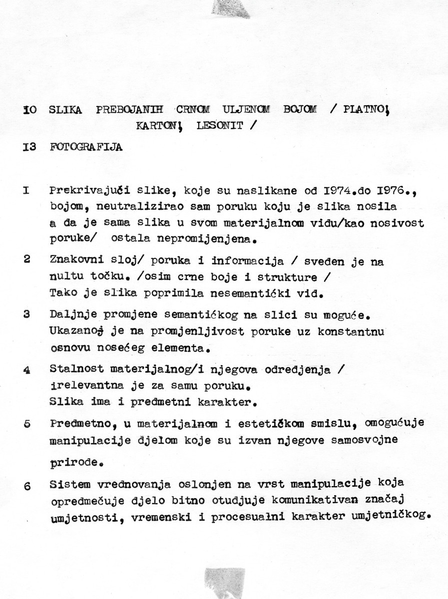 - prekrivajući slike bojom, ukazao sam na njihov predmetni karakter, neutralizirao sam poruku koju je slika nosila, a koja je ostala zabilježena fotografijom (u čisto informativno-dokumentarnom smislu).