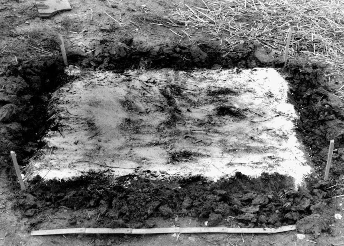 Ugrebenom linijom u zemlji označena je površina kvadrata veličine 1 × 1 m. Na dobivenoj površini aranžirano je niz mogućih situacija. Zatim je rub istog kvadrata dublje ukopan, na njegovu površinu posipano je vapno a na taj sloj stavljena je slama. Zadnja etapa su prekopani i izmješani svi slojevi. Rad definira zemlju kao nosivi i sveobuhvatni element. Kvadrat, kao simbolički lik zemlje, "mjesta", je sabiralište energetskog sklopa. Postupci i mjerenja, ograđivanja/obrubljivanja i označavanja točaka ostvaruju"crtež" koji uspostavlja odnos tijela i zemlje: trag prisutnosti.