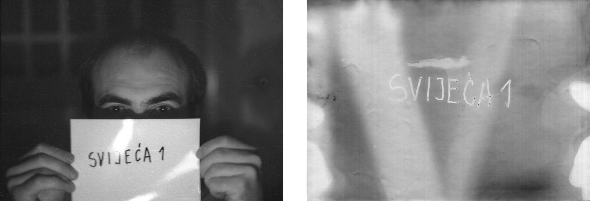 1 Rad je dio mojih fotografskih radova kojima se ispituje svjetlo i mogućnosti koje daje fotografija u okviru tehnološkog postupka analogne fotografije. Rad "Svijeća" je srodan ovom radu. Na fotografijama je moje lice ispred kojeg držim fotopapir vrlo kratko izložen svjetlu u tri karakteristične pozicije.