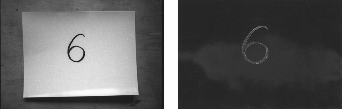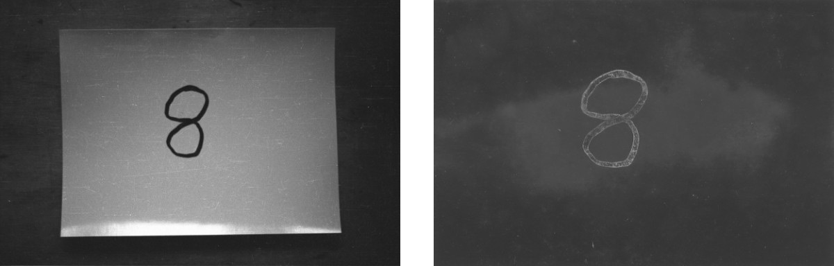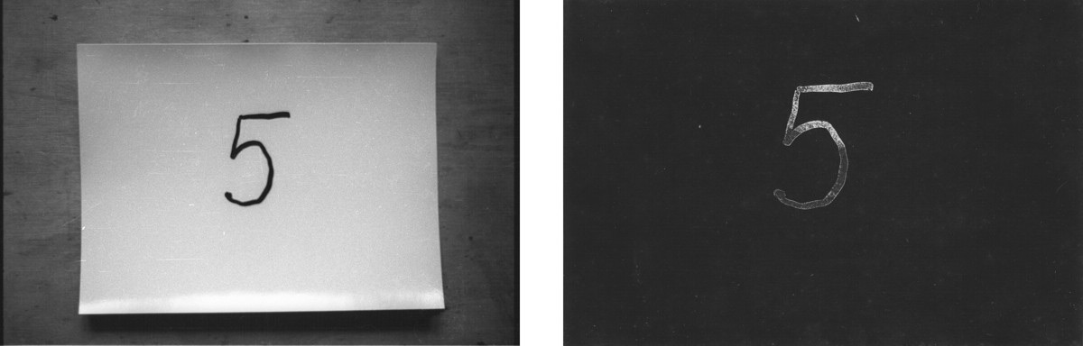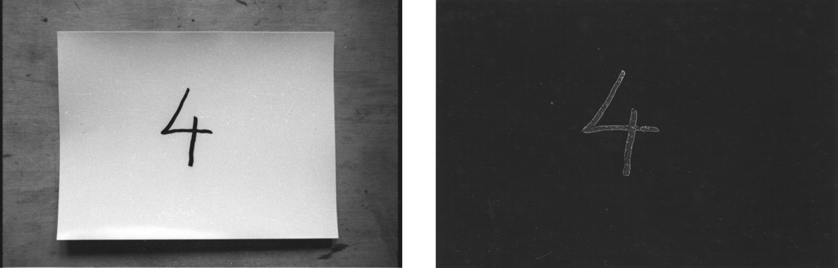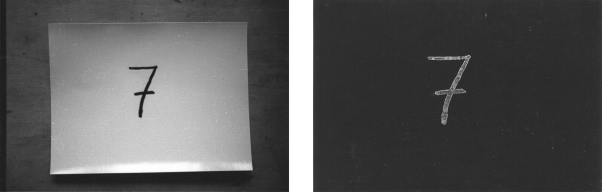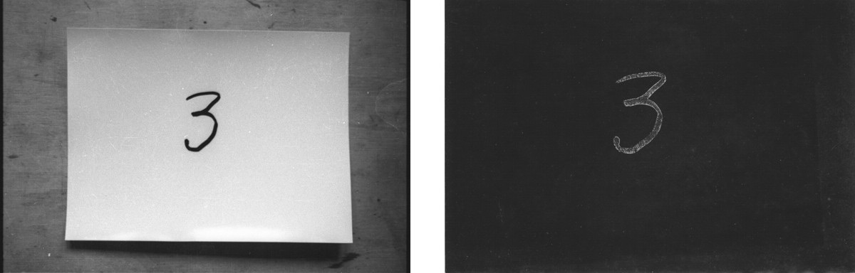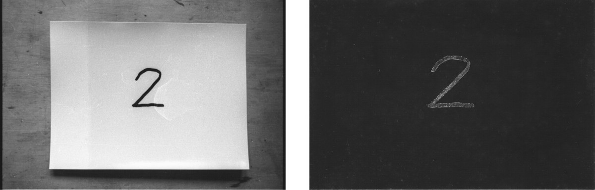 2 U tamnoj komori fotopapiri su flomasterom označeni brojevima od 1 do 9. Prije sumraka izloženi su kratkotrajno dnevnoj svjetlosti u razmaku od 10 minuti i snimljeni a poslije svaki je razvijen i fiksiran. Rezultat je skala zatamnjenja od tamnog prema svjetlijom tonu kod razvijenog izloženog fotopapira a obrnuto je kod snimljenog.