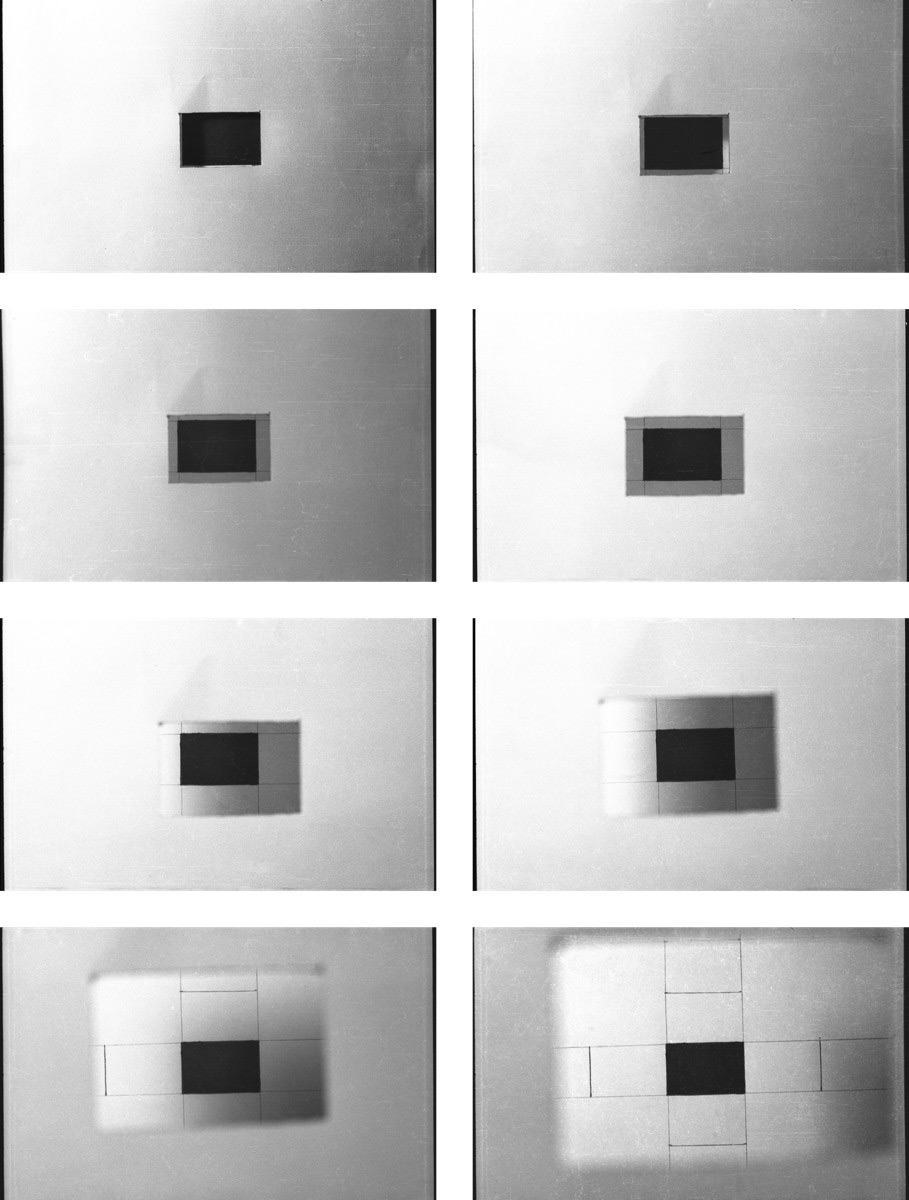 3 Radovi su povezani uz kadar koji se pojavljuje kao okvir koji je ispoljavanje ograničenja, a unutar postupka izdvajanja, prisvajanja i označavanja prostornog elementa i polja vidljivosti. Ovdje je posebno korišten u kontekstu specifičnosti analogne fotografije. Napravio sam u papiru izrez Leica formata, 35 mm, klasični odnos 2:3, i onda sam to koristio u različitim svjetlosnim uvjetima. Osvjetljavao sam ili papir ili objekt koji se nalazio iza papira i vidio se unutar tog izrezanog Leica-kadra. Pratio sam pomake između okvira i motiva iza njega.