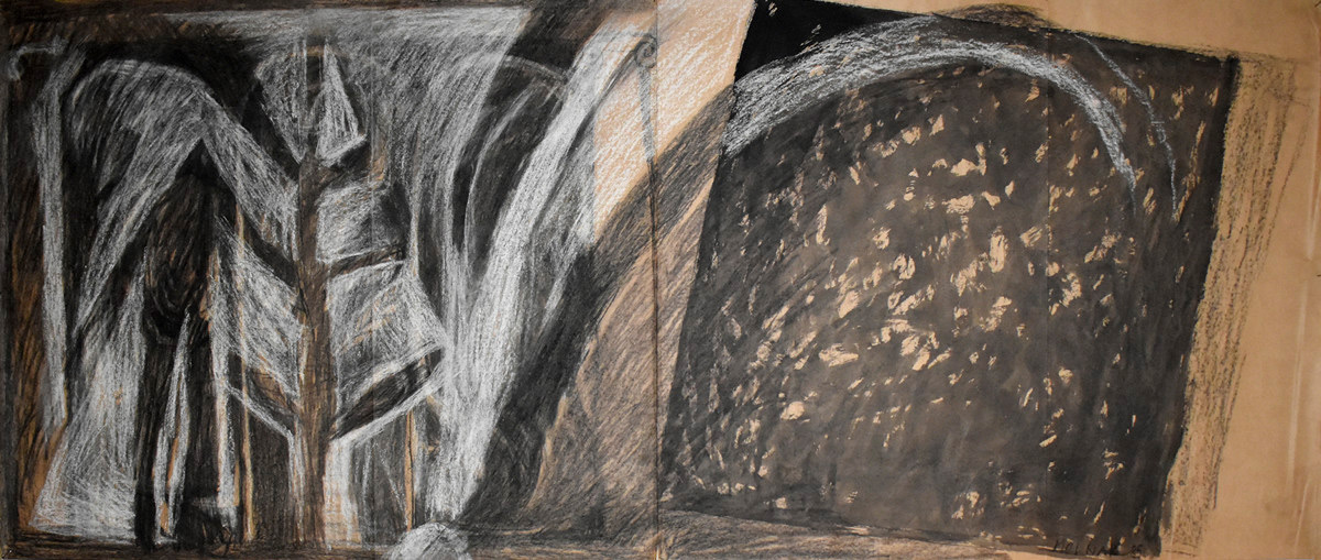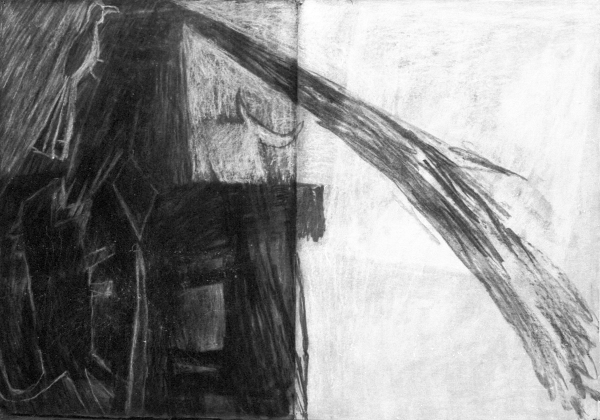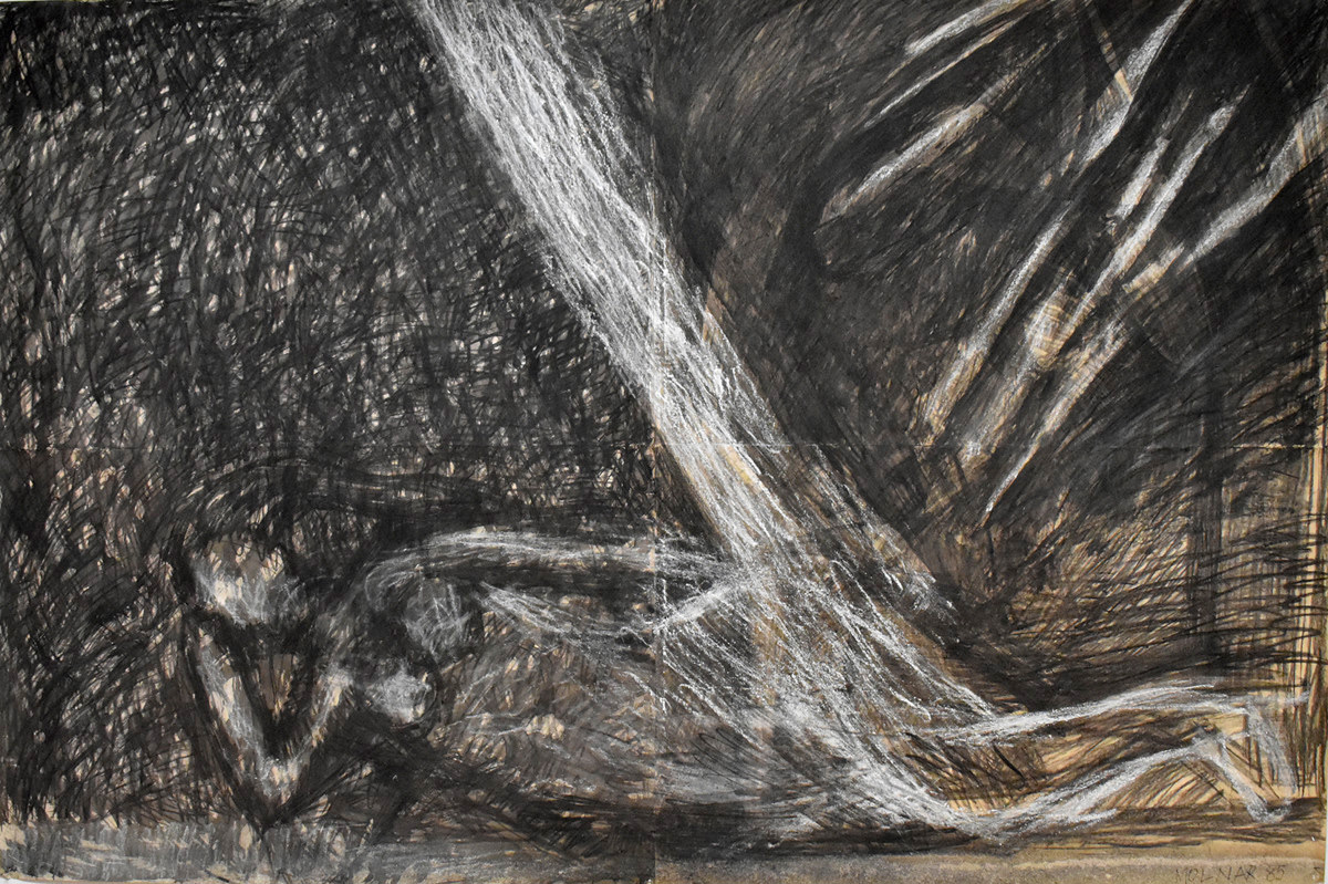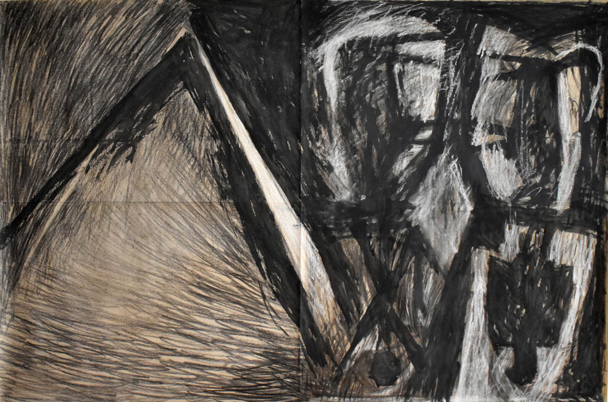 Ugljen, tuš, kreda / papir, 126 × 184 cm