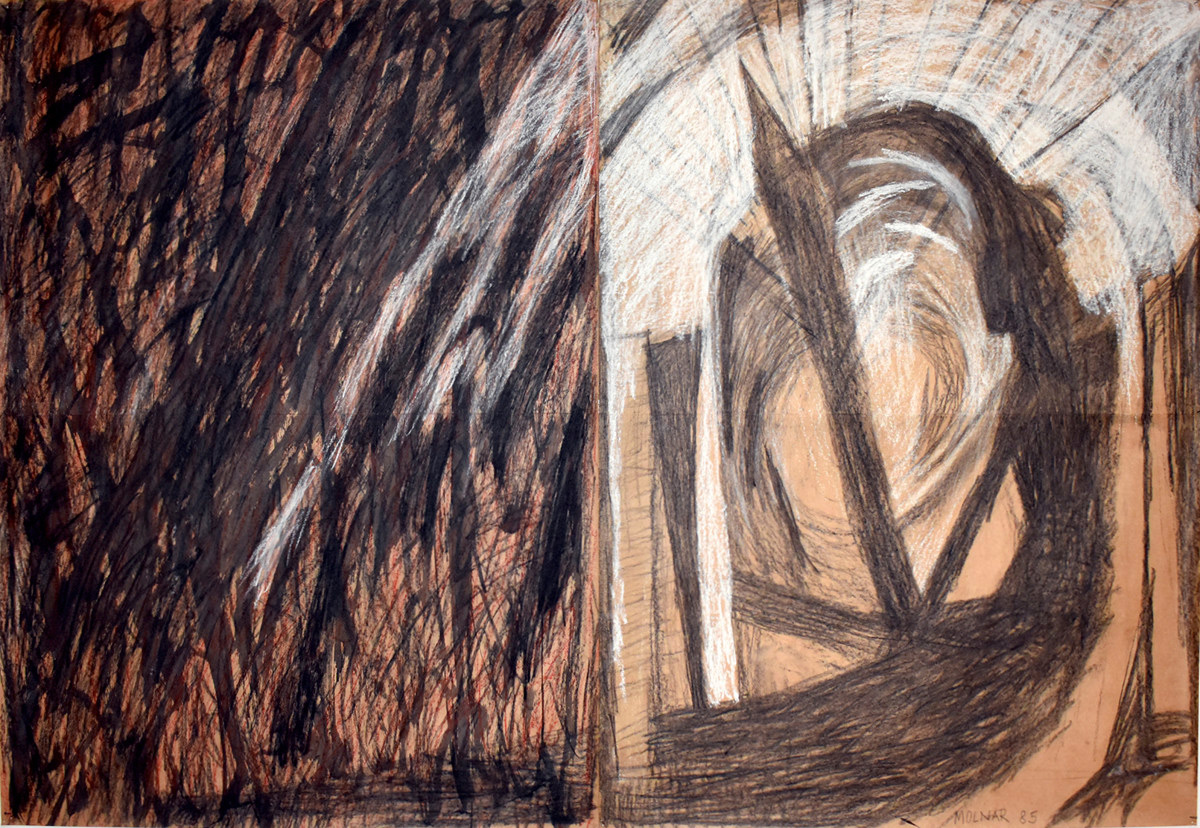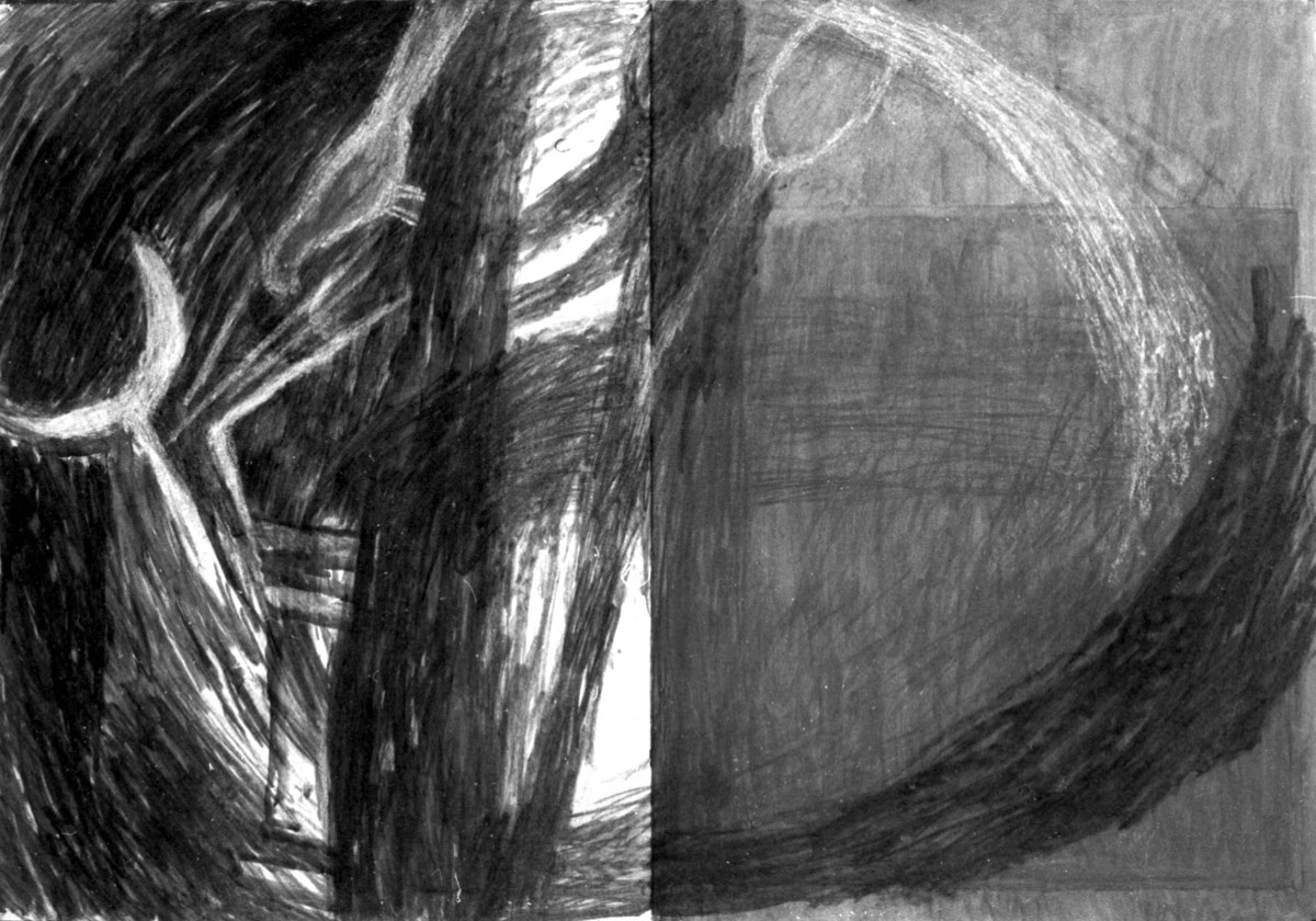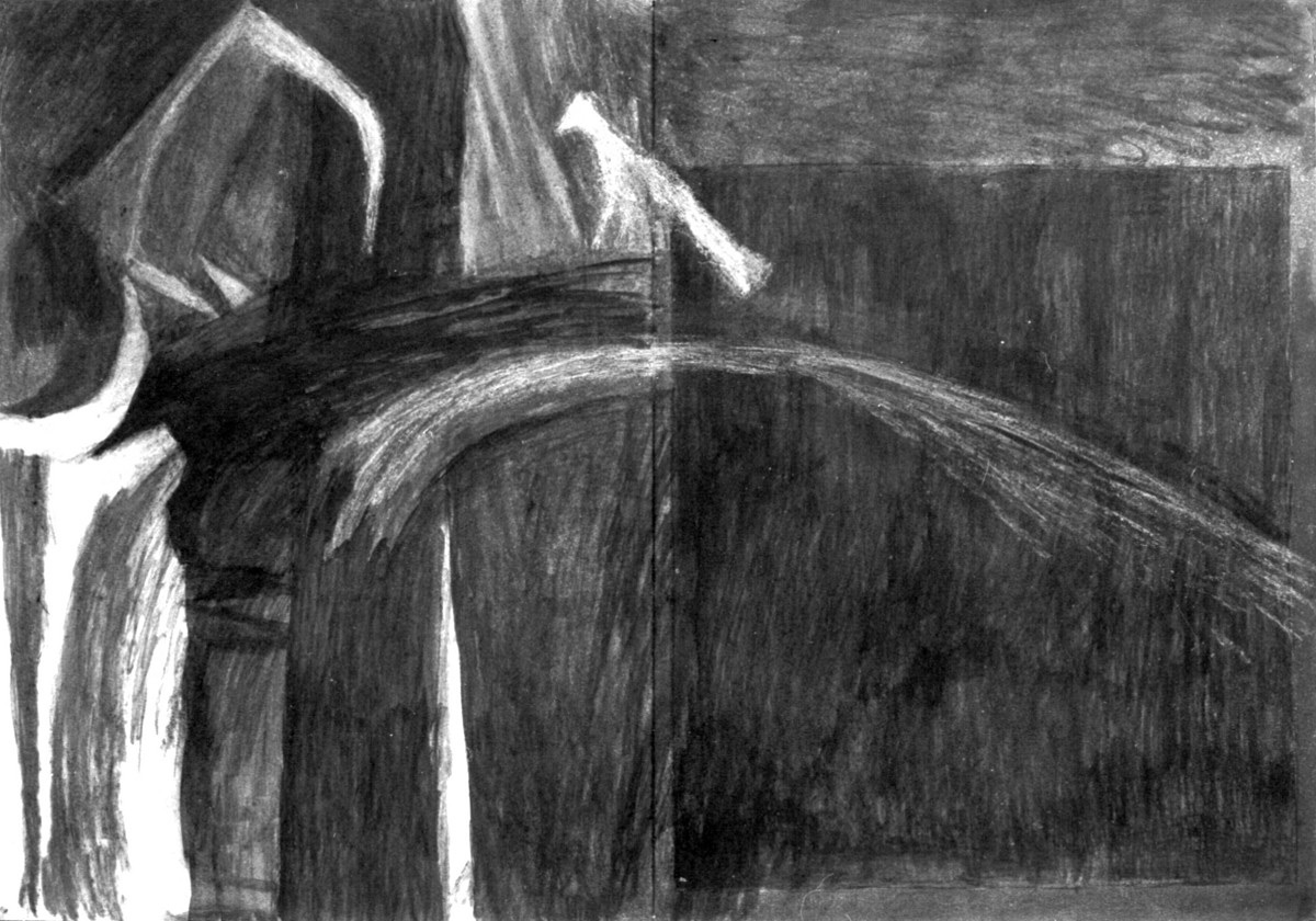 Ugljen, tuš, kreda / papir, 126 × 184 cm