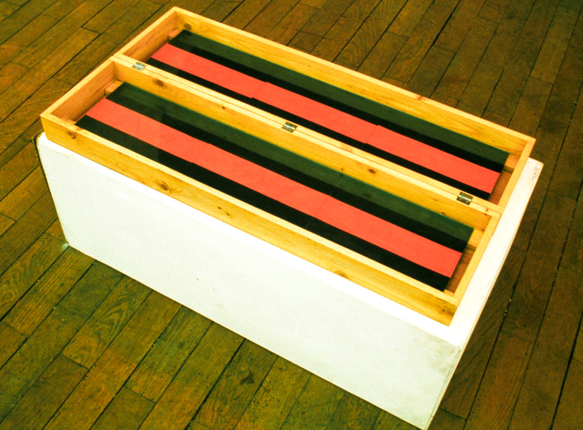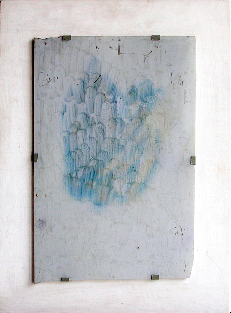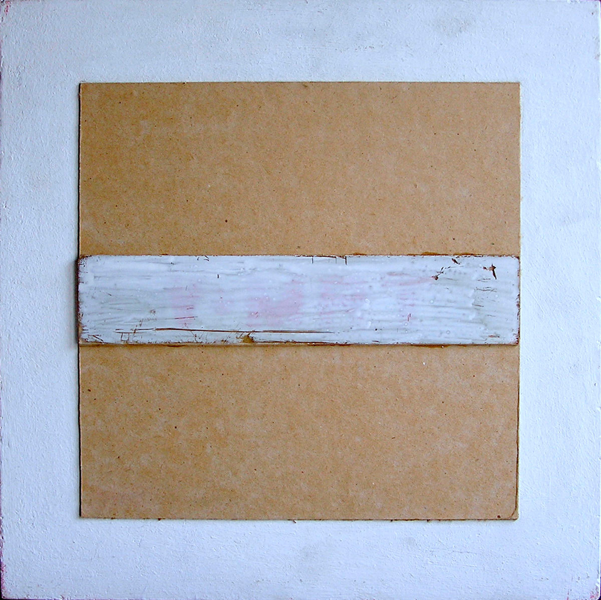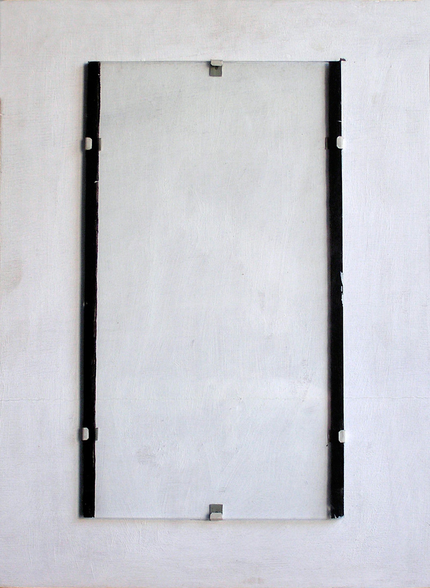 Dva objekta, drvena kutija sa staklom i kartonom, akril na platnu, 40,5 × 36,5 cm, 1995.
