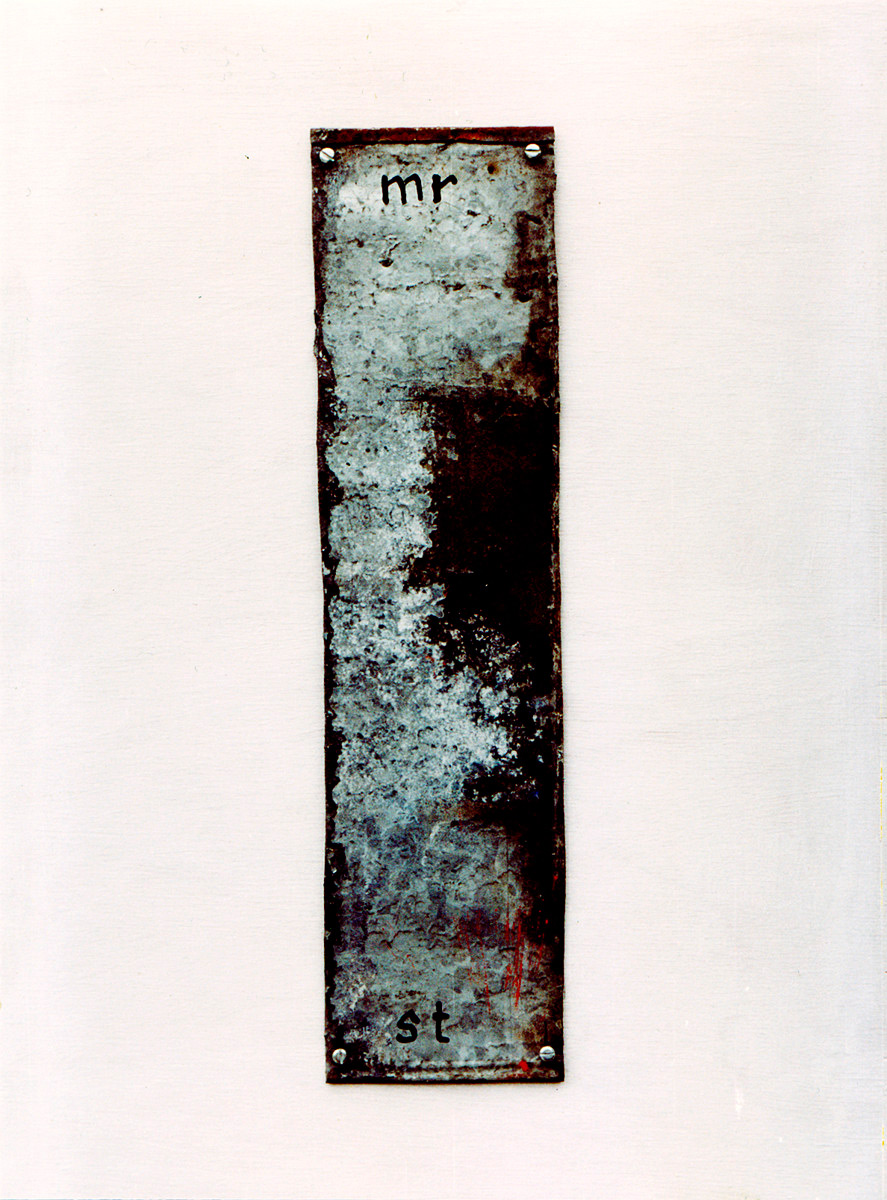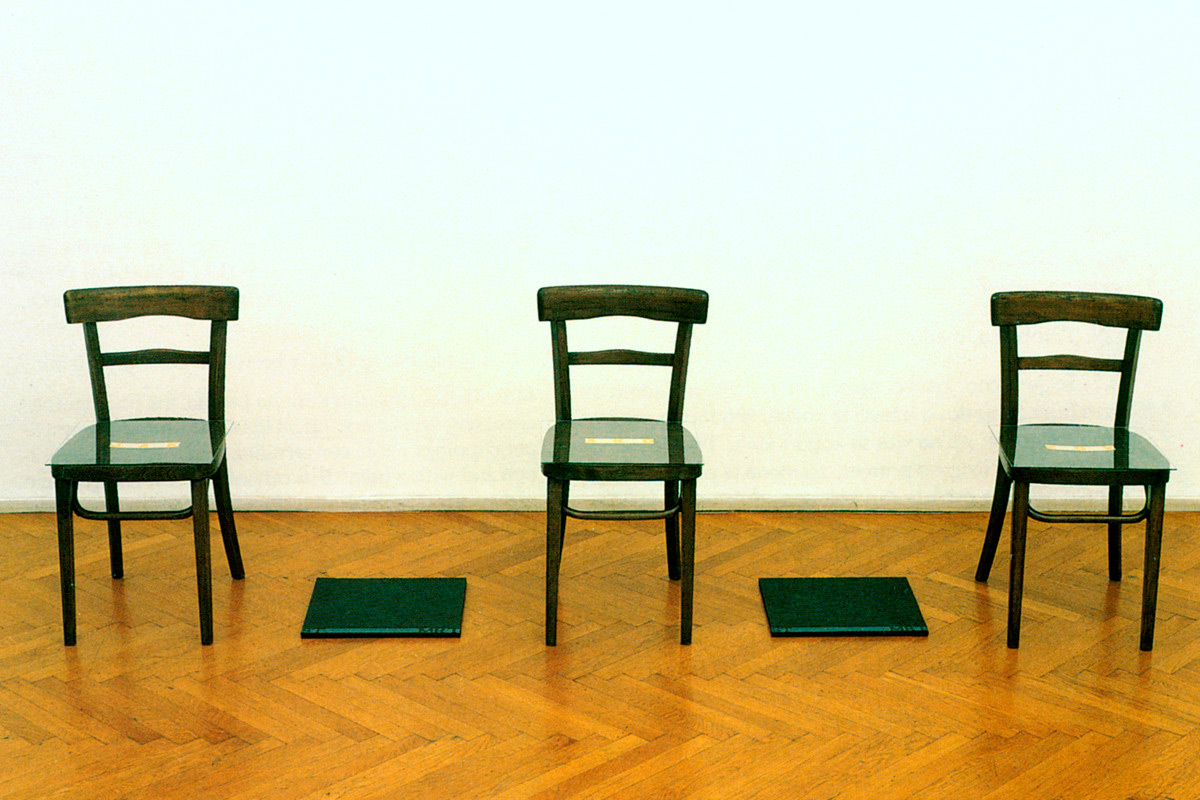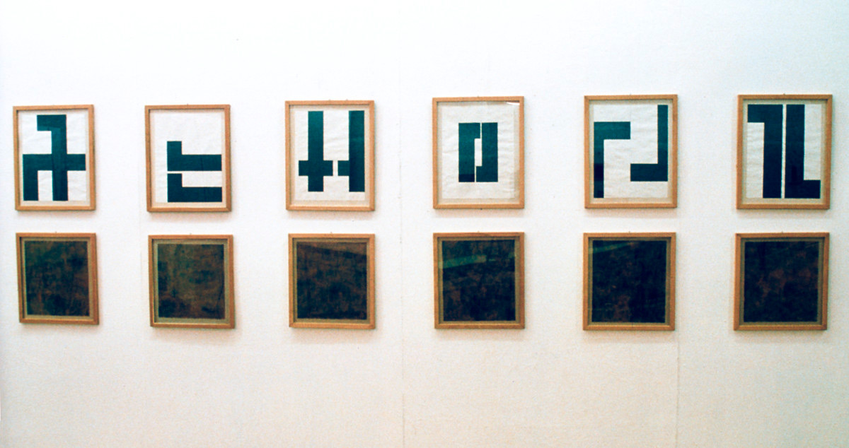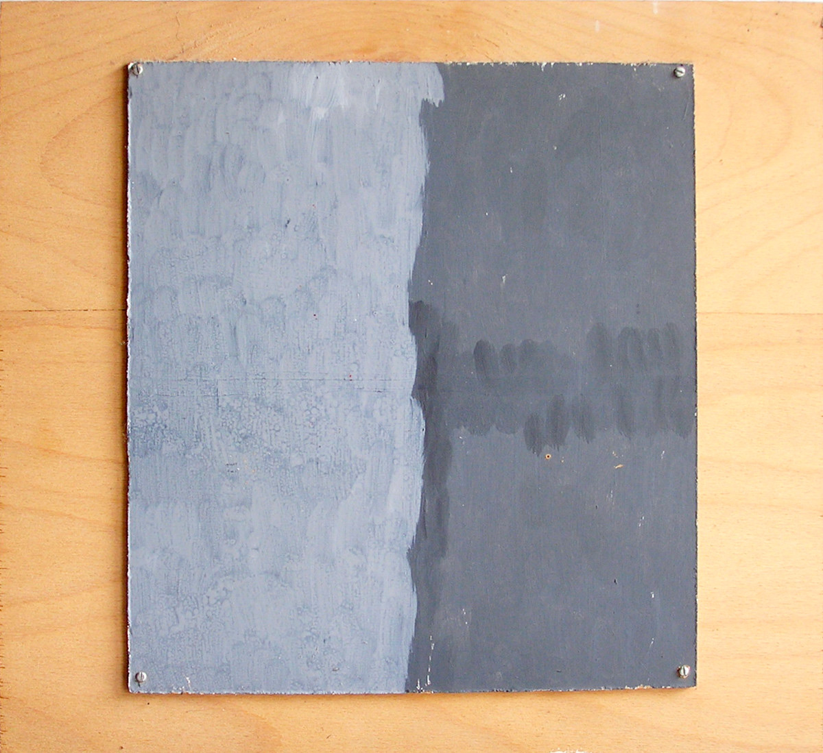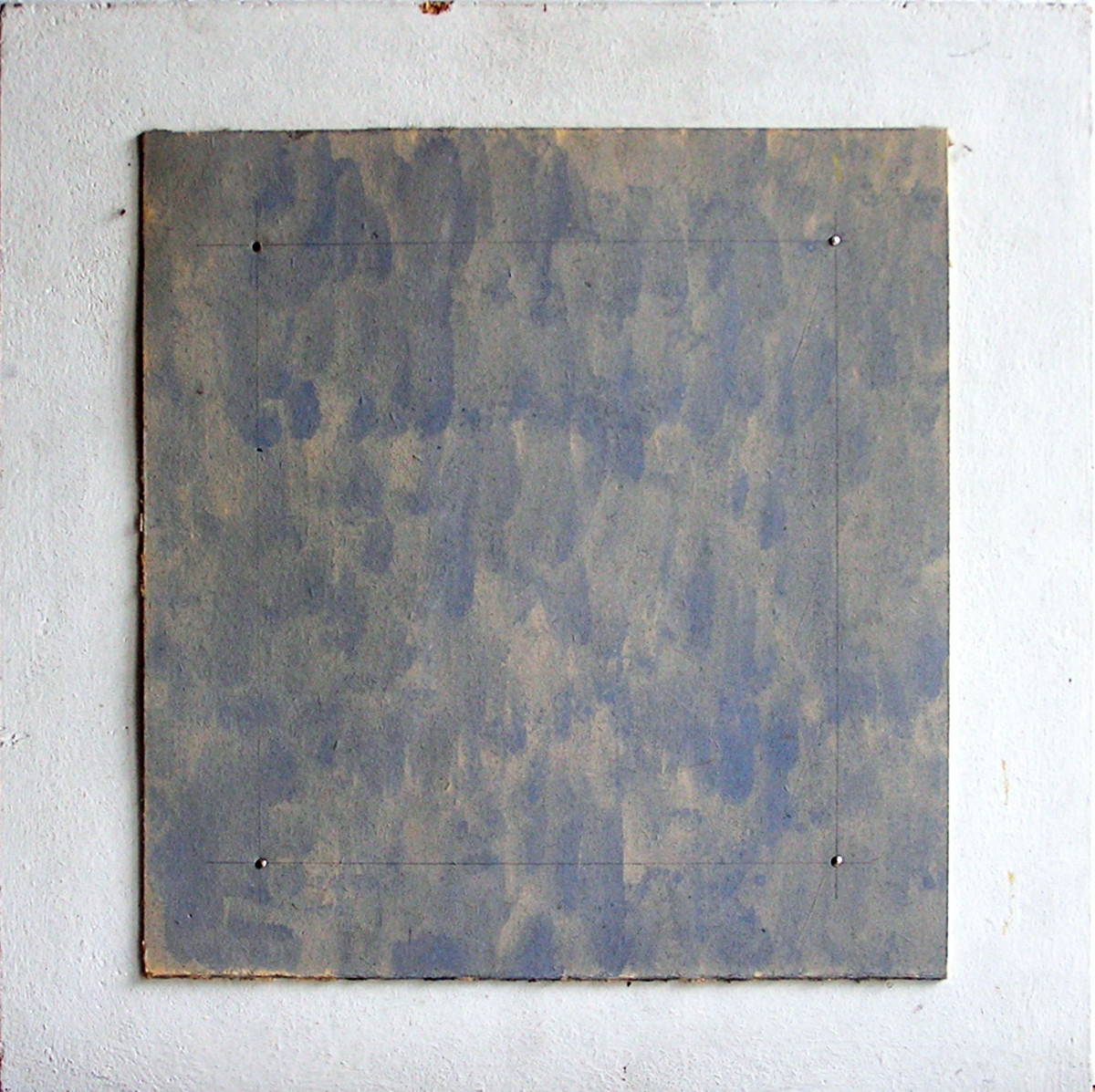 Dva objekta, drvena kutija sa staklom i kartonom, akril na platnu, 40,5 × 36,5 cm, 1995.