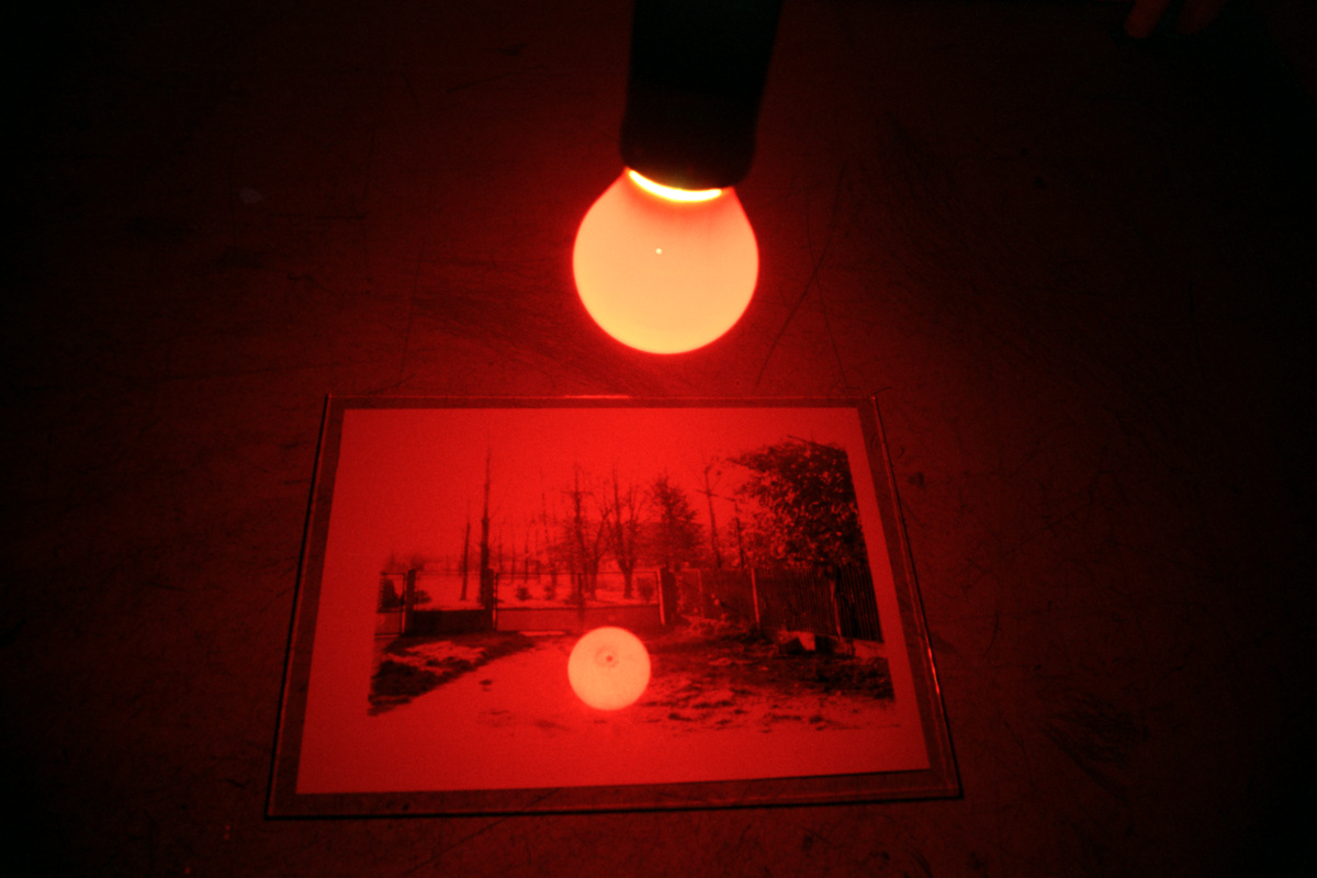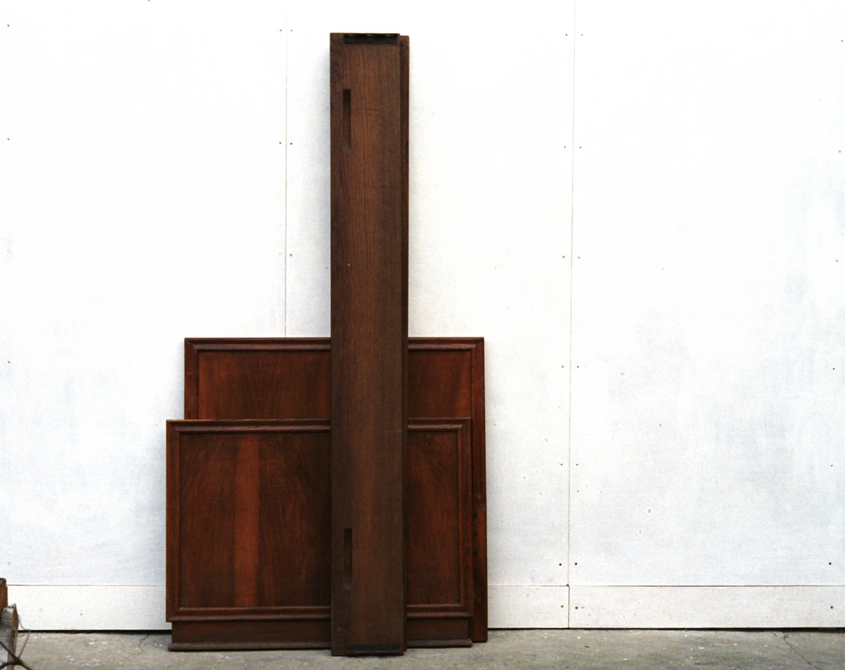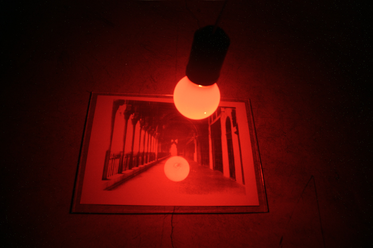 Niz odijela obješenih o vješalice na zidu iznova priziva Veliko staklo – "uniforme" neženja, složeni ljubavni stroj pun erotskih naznaka koje završavaju izjalovljenjem. Tijelo je plošno, reducirano frontalnim pogledom. Intenzivan miris upućuje na nedavnu prisutnost tijela, na stanovanje u "društvenoj ljušturi". Iznošena odjeća poprimila je oblik osobe koja ju je nosila. To nije odjeća nepoznatih, anonimnih ljudi. Izdvojena iz obiteljskog ormara, krajnje individualizirana, ona zrači vrlo određenom energijom, energijom prisnosti, otiskom bližnjih. Prigušeno, crveno svjetlo odvodi naš pogled sa zida na tlo. Osam žarulja osvijetljava osam fotografskih kopija smještenih pod staklom na podu galerije. Na njima se izmijenjuju dva motiva. Figura umjetnika u atriju Duždeve palače u Veneciji i prazno dvorište umjetnikove roditeljske kuće u Reki kraj Koprivnice. Dva "dvorišta", javno i privatno, tuđe i blisko, govore o istome – o udaljenosti i odsutnosti.