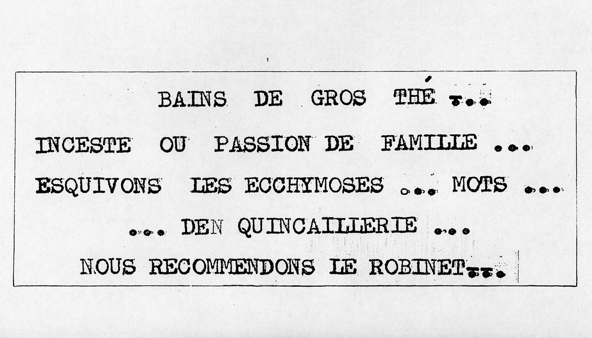 Tekst koji se nalazi unntar instalacije "Dvojnik" (fragmenti rečenica iz Duchampova filma Anemic Cinema)