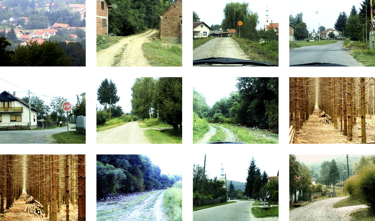 "Između šume i brašna" je ambijent u kojem je video jedno imaginarnog putovanja unutar mjesta Reka. Putovanje od toponima zvanog Velebit do toponima zvanog Kavnik. Putovanje se nadovezuje na prethodno "veliko" putovanje te je svojevrsni nastavak "Putovanja u Reku". Putovanje od vidikovca koji je u lokalnim okvirima nazvan Velebitom, od kojeg se pruža pogled na čitav kraj, sve do suprotne točke, Kavnika, vodi kroz cijelo mjesto: prvo se treba spustiti niz brdo, zatim proći kroz središte mjesta u smjeru sjevera prema gustim šumama, a u međuprostoru se prolazi obrađenim poljima, na kojima se raste kukuruz i pšenica. Pšenica je prisutna kao svojevrsna paradigmatična kultura sa posebnom, izrazito kompleksnom simbolikom upućivanjem na njenu pretvorbu: brašno i kruh. Pšenica, odnosno, brašno, nalazi se između dviju krajnjih prostornih točaka, koje su istovremeno vrlo blizu i vrlo daleko. Na tom putu, u blizini šuma Kavnika nađeno je odbačeno smeće. Iz odbačene gomile izdvojio sam osam predmeta. Putovanje je bilo povod za oblikovanje svojevrsnog turističkog prospekta sa značajkama mjesta poput takvog načina prezentacije.