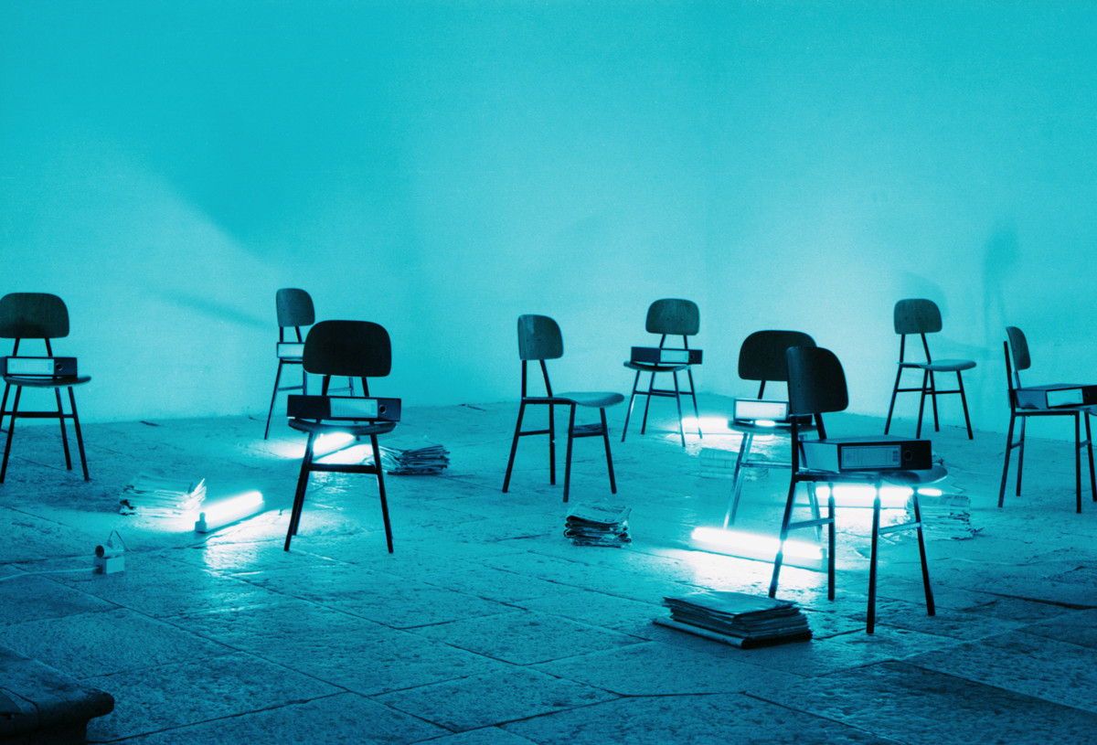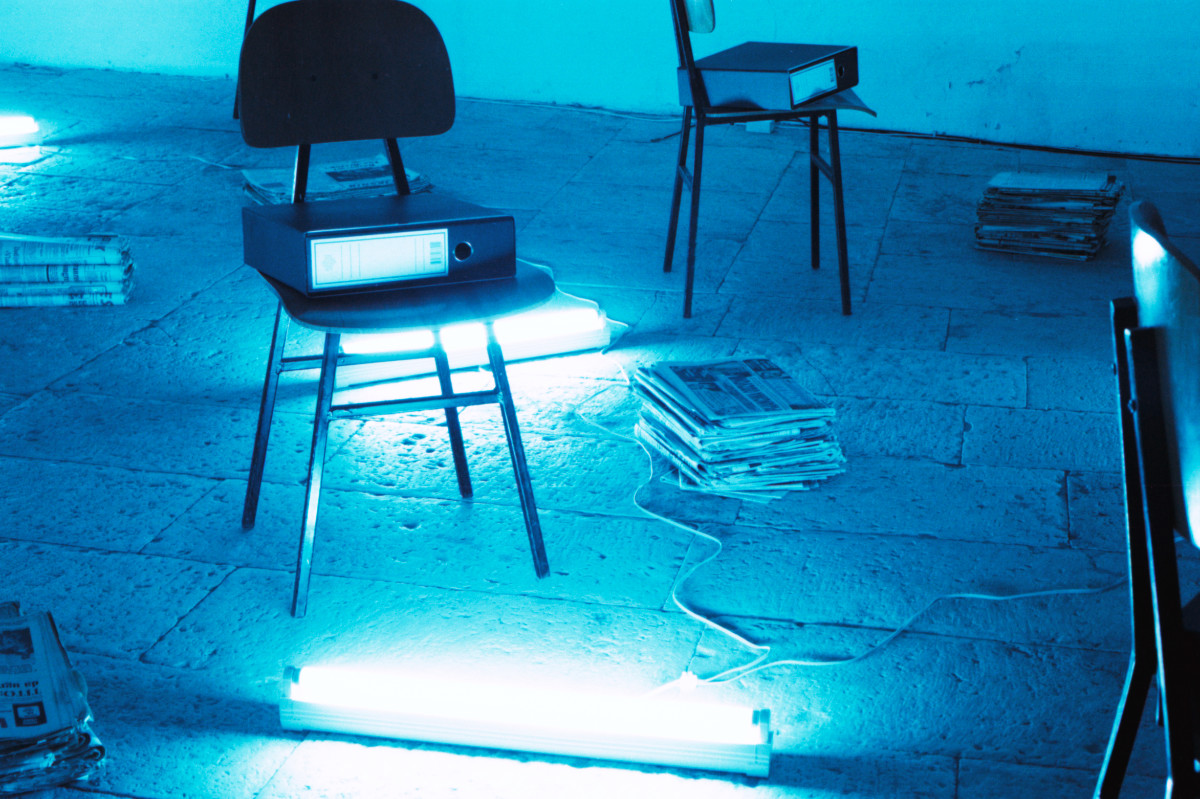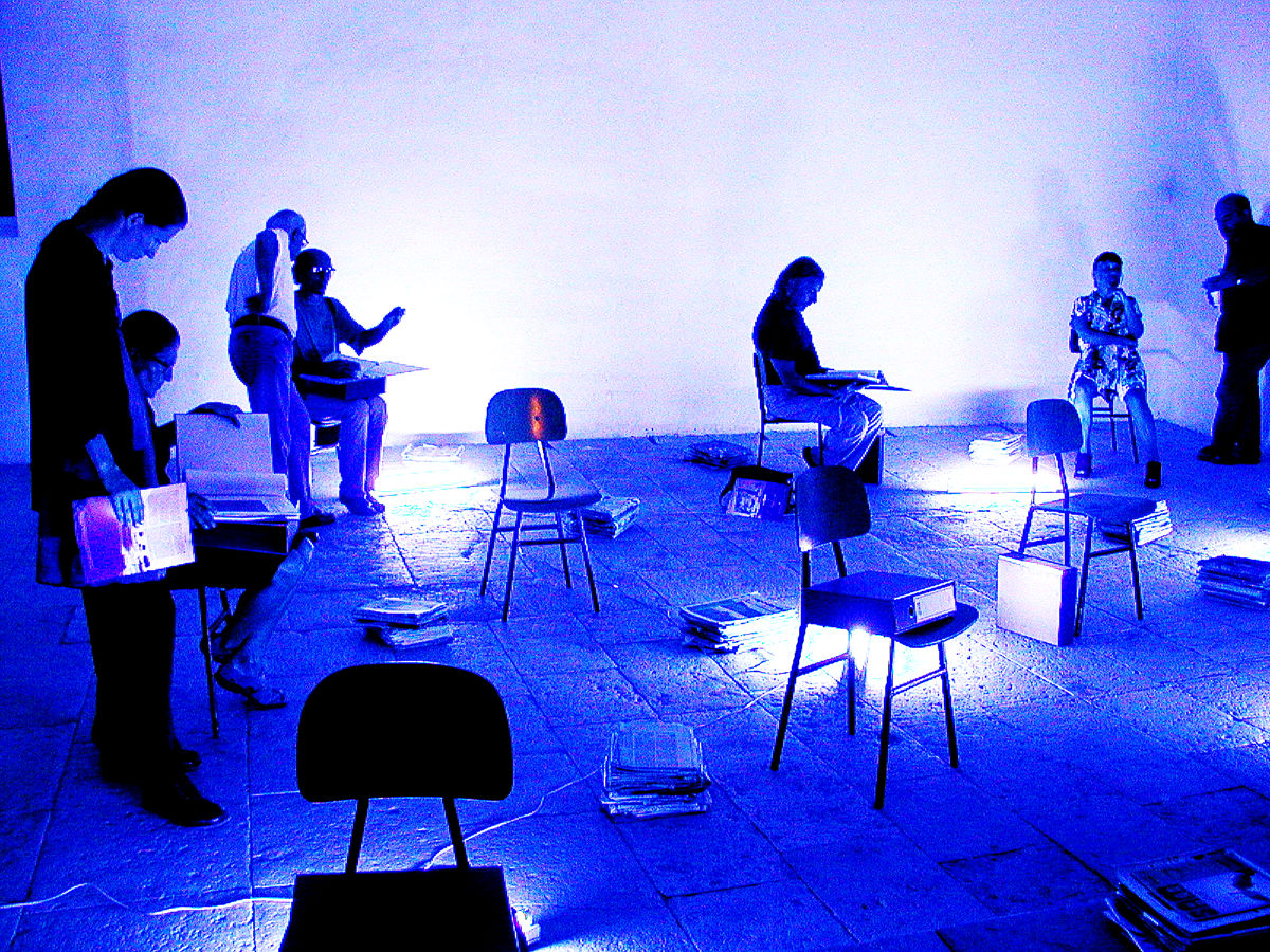 Rovinjski ambijent čine tri kruga elemenata - inscenacija sa stolicama, neonskim plavim svjetlom i novinama, sadržaji pohranjeni u registratorima i projekcija lica "svjedoka". Tu se zanavlja jedna od starih dihotomija znakovitih za Molnarov rukopis – odnos privatnoga i javnoga. Dok registratori s pričama o događajima koji određuju i presudno usmjeravaju živote junaka priča objektiviraju privatni aspekt, njegov javni antipod naglašen je projekcijama "svjedoka" na galerijskom zidu i buntovima novina iz vremena nastanka priča razmještenim po galerijskoj podnici.