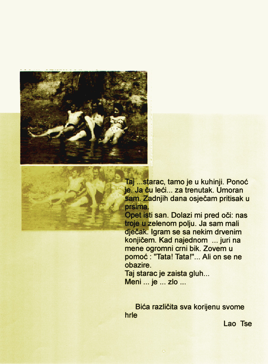 Passage/ad acta tematizira formu biografije u umjetničkom kontekstu i to tako da uzima referentni događaj, onaj koji je točka prijeloma u životima "junaka". Velik trenutak, presudan događaj trenutak je prosvjetljenja (epifanije, često literarno tematizirane). On je gotovo uvijek povezan sa smrću. To su: prijetnja smrti (Sudar), izbjegnuta smrt (Bolest), smrt bližnjeg (Rat) itd. Osam kratkih "priča" s naslovima. Sudar (Crash), Domobran, Kava, Amerika; Tri brata, Ana K., Vrućina i Gluho doba eksplicirane su u osam registratora postavljenih na stolicama razbacanim po prostoru koji je osvijetljen plavom neonskom svjetlošću (koja podsjeća na hladnu svjetlost katodnih cijevi) koja dolazi od poda. Na podu su razbacani svežnjevi raznih novina iz posljednjih 30 godina. Priče su obrađene ilustracijama iz života junaka i "dizajnerskom obradom", simuliranjem postupaka koje koriste slikovni mediji, novine i knjige. Pitanje epifanije, "otkrivenja", važna je činjenica koju tematizira umjetnost i religija. U njoj se odlučuje o smislu i besmislu, o životu i smrti. Forma registratora označava arhiviranje životnih činjenica, njihovo svođenje na rečenice, na pojedine riječi, na slike. Ova administrativna bezlična forma, kao i plavkasto svjetlo neona, izlaže subjektivnu toplinu iskaza hladnom i ravnodušnom pogledu promatrača.