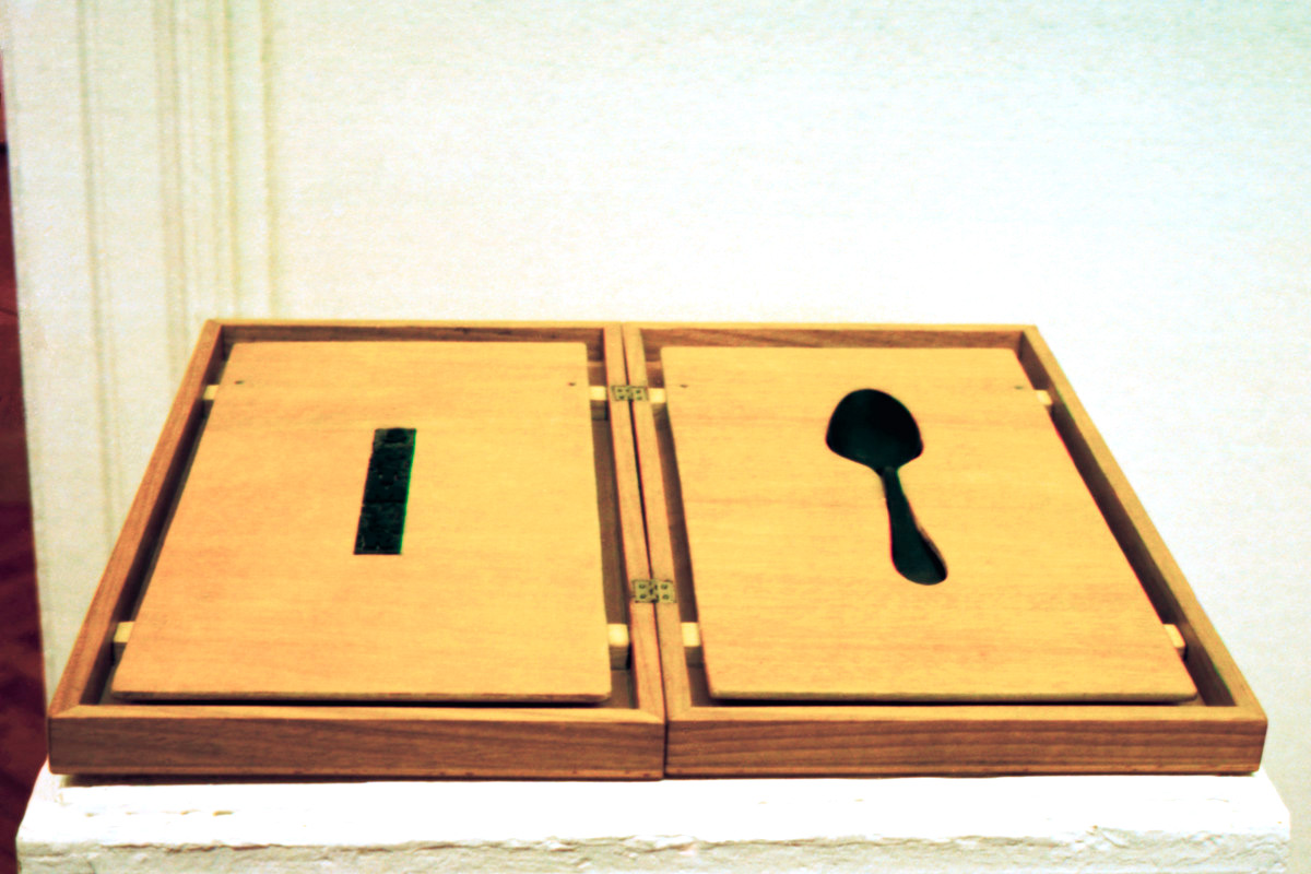 Uz ovu kutiju nalazi se još jedna koja je njen dvojnik. Instalacija može biti prezentirana na dva načina: 1. U razvijenoj formi, kad su izloženi svi elementi instalacije, osim samih sredstava njene proizvodnje. 2. U zatvorenoj formi, u obliku dviju kutija, jedne pune i njenog praznog dvojnika. Ovoj instalaciji prethodi ciklus "oktava" u kojem je naznačena osnovna semantička i simbolička struktura koja če poslužiti kao osnova ovog rada. "Ikona žlice" u ovom radu bila je prije upotrebljena u "oktavi" kao znak za hranu i njen pretvorbeni put, znak materijalnog nasuprot svjetlosnom. Mehanizam dvostrukosti: naizmjeničnost aspekata otvorenog i zatvorenog.