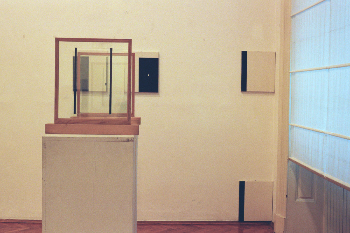 Instalacija na izložbi u Galeriji Miroslav Kraljević, Zagreb 1996. Dva stakla za "1–20"