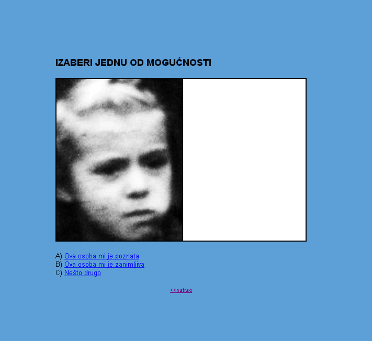 Gledajući ta lica primjećujemo da ona gledaju nas, kao s portreta vješto uklesanim na nadgrobnim spomenicima koji se doimaju kao da nas njihove oči neprekidno "slijede". Inverzija promatranja koja izaziva nelagodu, pomaknuta perspektiva, preispitivanje riječi "blizu" i "daleko" kao i "promatrač" i "promatrani", otvara temu pouzdanosti - subjektivnosti percepcije, i varljivosti - objektivnosti sjećanja. Samorazumljivost značenja i konteksta, jedinstvo vremena i prostora na tim je fotografijama ukinuto. Priča se potom proširuje na novi krug svjedoka koji pokušavaju iz osobne vizure identificirati ljude s fotografija – Molnar provocira igru sjećanja i zaborava i u svoj on-line rad interaktivne dramaturgije uključuje osobne povijesti danas živih likova, i svjedočanstva živih o mrtvima tran-s-aparentne pojavnosti, koji dakle postoje samo u virtualnom prostoru slike ili varljivog ("užegnutog") pamćenja živih. Identiteti svjedoka s fotografije dotiču se i pretapaju s onim novog kruga svjedoka koji pokušavaju identificirati ljude s fotografija, kratkom izjavom u trećem licu u formi didaskalija kojima su "potpisani" otvoreni frame-ovi na ekranu. Propitivanjem o identitetu anonimnih, malih ljudi Molnar ironizira "celebrity" sistem koji nameće globalnu familijarizaciju s licima iz sustava medijskih zvijezda.