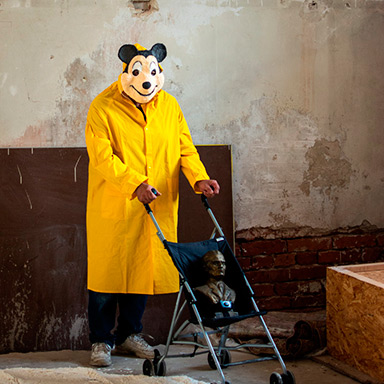 Masku Mickeya Mousea koristio sam kao već uobičajni i pomalo ofucani znak i simbol jednog drugog svijeta u koji zbunjeno i nesnalažljivo uranjamo, koji sve ideologije miksa u jedinstveni hedonizam potrošačkog društva.