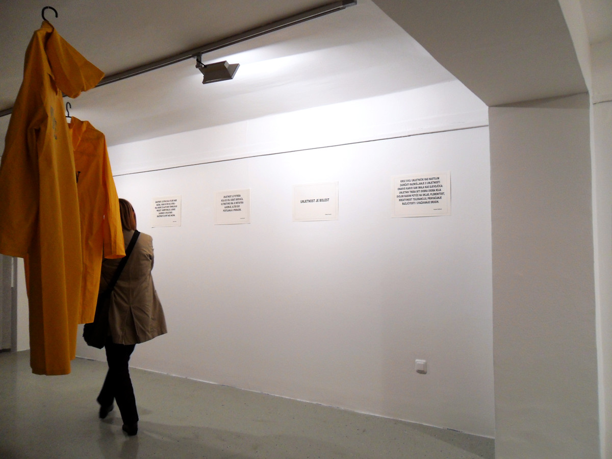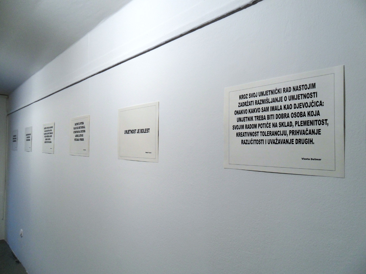 Printane rečenice-izjave umjetnika izložene na samostalnoj izložbi u Galeriji Forum, Zagreb, 2014.