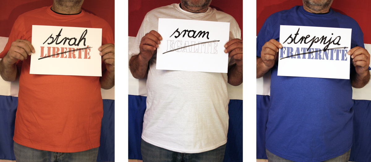 Na tom platnu su otisnute riječi: Liberte, Egalite, Fraternite.