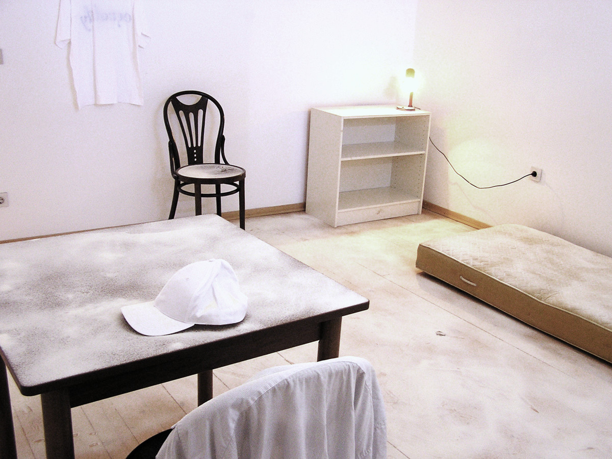 Ambijent predstavljen na ovoj izložbi, a čiji je glavni čimbenik brašno, sastoji se od dva povezana prostora. U prvom će umjetnik učiniti instalaciju samačke sobe čiji su predmeti (stol, stolica, madrac, svijetiljka, televizor...) posuti brašnom, dok se drugi prostor sastoji od polica na kojima su poredane vreće brašna u pakiranju od 1 kg, a koje na svojem omotu umjesto etikete proizvođaća imaju printeve portreta lica iz ranijeg autorova ciklusa "Svjedoci". U prvom prostoru na televizoru se emitira video koji bilježi proces izrade kuglica od brašna, koje se nakon što su zamijesene i formirane prostiru po jeftinom plastičnom stolu i čekaju zalaz sunca. Taj video, kao i cjelokupni Molnarov ambijent ima izrazito simboličku konotaciju. Brašno, osnovni ljudski prehrambreni artikl mijesi se u kugle, savršeno geometrijsko tijelo čiju izradu forme pratimo od njenog nastajanja, dakle jutarnjeg rađanja do vremenskog odumiranja u smiraju dana. Samačka soba namještena osnovnim elementima i posuta brašnom asocira na odsutnost i napuštenost, kako je pust i samački život. Namještaj nije umotan u bijele plahte koje su jasan znak odlaska s određenog mjesta, već je posut brašnastim prahom koji može sugerirati naslage prašine, ali i sjeme života. Nameće se iščekivanje ljudske geste, traga ili otiska koji će pokrenuti život ovog prostora. Drugi prostor je životan, jer namirnice na polici zazivaju potrošačko društvo koje je u biti jednako otuđeno kao i život samca iz prethodne prostorije. Svojom komercijalnom, dućanskom impostacijom, te otisnutim ljudskim licima na ambalaži drugi prostor na izvjestan način poništava prvi, koji zaziva samoću i otuđenje, ali ipak proizlazi iz dubokog i jasno naznačenog humanog prosedea, kojeg u drugoj prostoriji nema.